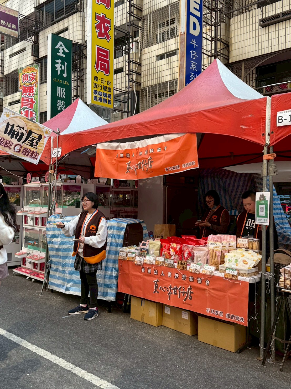 在年貨大街活動期間,協會在台中天津年貨大街設立公益展攤義賣專區,