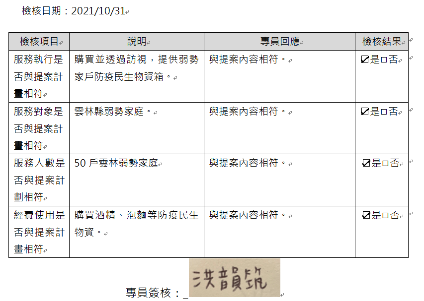 本次的專案總共募得116,000元,在2021/08-2021/09月的這段期間,全數用在雲林縣50戶弱勢家庭防疫物資箱。