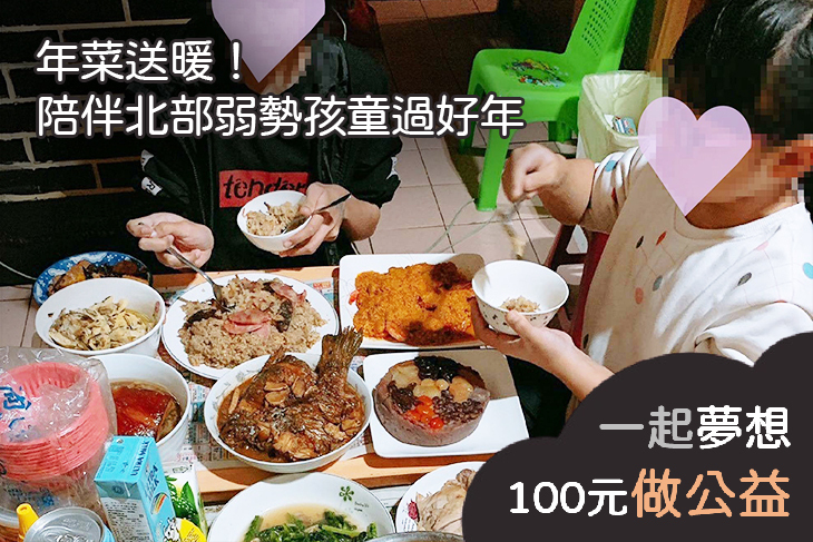 謝謝大家支持【一起夢想-年菜送暖!陪伴北部弱勢孩童過好年】專案,讓孩子們能夠享用溫暖的年菜過個好年,邀請您持續關注一起夢想的資訊,待專案完成後,我會再向各位報告!